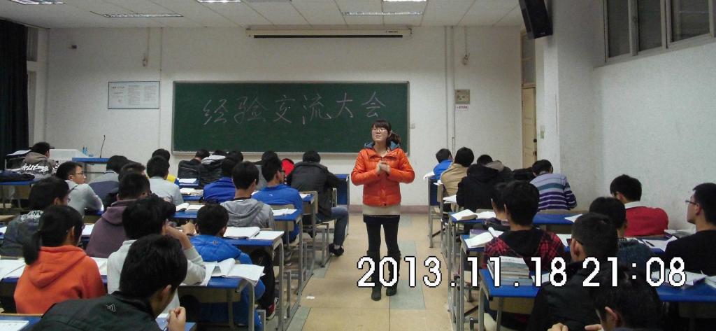 11月18日晚,先后获得国家奖学金和、国家励志奖学金、全国大学生英语竞赛二等奖的弹药工程与爆炸技术11-5班学生孙贝贝将自己的学习经验通过报告会的形式分享给2013级新生。报告会期间同学们认真听讲,互动环节气氛活跃。孙贝贝语言幽默诚恳,汇报内容通俗易懂,她建议同学们拥有适合自己的学习方法并养成良好的学习习惯,善于反思总结,提高学习效率。报告会圆满结束后,同学们一致表示获益匪浅,对大学学习有了进一步认识,树立了“大学学习不仅为了获得文凭,更重要的是获得知识,提高能力”的学习目的。