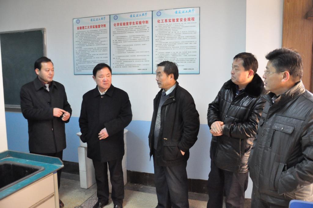刘泽功一行首先查看了无机化学、有机化学、分析化学、物理化学和普通化学五个实验室,并重点检查了化学药品保管室。随后,刘泽功听取了化学工程学院应用化学系实验室主任王宾的工作汇报,他肯定了化学实验室危险化学品分级管理方面采取的措施,并就实验室管理、安全和卫生等提出了要求。刘泽功指出,高等学校实验室危险化学品安全管理工作直接关系到广大师生的身体健康和生命安全,关系到社会和谐稳定,希望化学工程学院提高安全防范意识、狠抓制度落实。