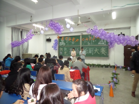4月12日晚,由化工学院和经管学院联合举办的以“拥抱阳光”为主题的英语话剧大赛在经管学院212教室举行。来自外国语学院的王文娟老师应邀作为专业评委。