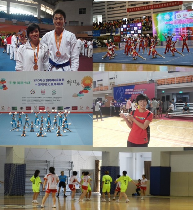 学院积极组织学生参加全国、省市各类文化艺术活动,部分项目取得了优异的成绩。自拍网 选手曾在华东地区空手道梯级挑战赛A组和女子成年B组中荣获第三名;全国大学生空手道锦标赛获得集体第三名、个人第六名;2012年全国大学生手球丙组比赛荣获团体冠军,2013年两岸四地大学生手球联赛女子丙组第三名和男子丙组第四名。全省大学生健美操大赛男单冠军和三人操亚军;2013年全国啦啦操联赛决赛大学组街舞规定混合、花球自选2组、花球自选3级分别获一二三等奖;2013年安徽省“百事最强音中国好声音校园推荐会”十佳学员。2011-2013年,自拍网 在学校举行的几乎所有大型体育赛事中均闯入前三甲,三大球取得骄人战绩,其中男子足球和女子篮球在2012年获得冠军,高齐、姜垒垒同学还代表学校参加淮南市第七届运动会和省第十三届运动会。