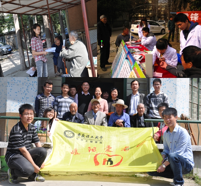 同时,率先在全校范围内发起关爱困难老人行动,深入淮南各社区开展调查,建立困难老人档案并细化老人具体需求,建立暖阳爱老帮扶中心,对因高龄、患病、残疾、经济困难、空巢等原因造成困难的老人有针对性的开展帮扶行动。与退休老教师侯波、侴万禧、李元福三个家庭建立一对一帮扶对接,涌现出孙方永、王燕等先进典型。孙方永同学还成立暖阳爱老团和大学生关爱困难老人爱心公益联盟,受到淮南电视台、《颍州晚报》、阜阳新闻网等媒体的报道。学院通过一方面组织学生利用雷锋月、重阳节、五四青年节、教师节、寒暑假等节假日赴敬老院、各社区、困难老人家庭开展慰问帮扶活动;另一方面邀请老人为青年学子开展革命教育、历史教育和文化素质教育,并让这些老人参加学院组织的元旦晚会等活动,丰富他们的精神生活。