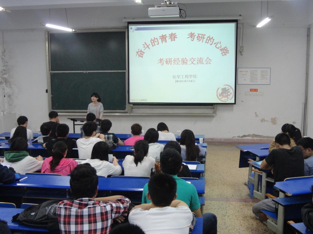 5月14日晚,学院在新附2202教室举办了以“奋斗的青春,考研的心路”为主题的考研经验交流会。交流会分心得分享和互动答疑两部分进行。在心得分享环节,分别由考取南京中医药大学、中科院(北京)化学研究所、中国科学技术大学、中南财经政法大学、北京理工大学的江红叶、唐小文、杨波、苏乐和吴宝同学做经验交流。他们分析了各门课程的学习方法、考研时间安排、如何选报学校和专业、跨专业考研的注意事项、考研心理调试以及面试技巧等方面,普遍认为考研贵在专注、坚持、踏实、自信、努力,切忌盲目跟风;多与读研的学长、学姐联系,及时获取考研信息;建立自己的学习方法,提高效率、劳逸结合、按部就班、切忌急躁。在答疑互动环节,与会同学就考研方面的疑惑踊跃提问,学长们进行了耐心、详细地解答。