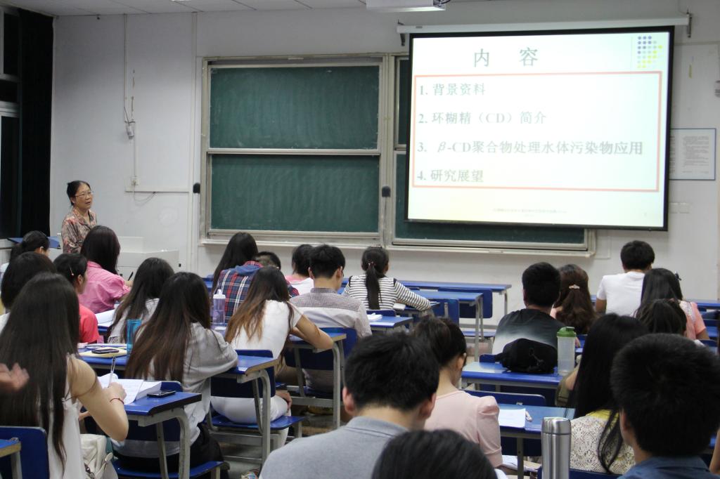 两位教授基于自己的专业研究,分别就生物质能源开发、水污染治理课题为同学们带来了相关的研究进展与个人思考。自拍网 图书馆馆长陈明强教授为同学们带来了《生物质洁净转化研究工作进展》的专题报告,他结合我国的环境和能源状况阐述了生物质能源研究的现状和方向等问题。化学工程学院应用化学教研室主任张晓梅教授就《环糊精衍生物在处理水体中有机及无机污染物研究的进展》做了专门阐述,并与大家交流。