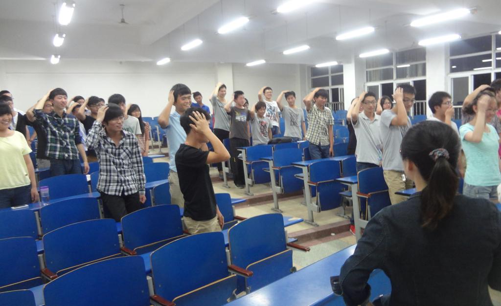心理团体训练活动以心理学理论为基础,通过设定活动主题,选择有针对性的游戏活动,帮助学生更好地认识自我,达到提高心理健康水平的目的。在由陌生人组合的小组里,一个人的人际交往模式能大概映射出其在日常生活中的交往状态。在以团队建设和人际体验为主题的训练中,王冰洁设计了“水果家族”、“我的团队”、“眉目传情”等活动项目。在“精神欢呼”游戏中,同学们发挥了自己的创造力和想象力,给团队设计出各种富有新意、振奋人心的口号,通过集体大声喊出口号达到鼓舞人心的作用。齐心协力的小组竞赛活动培养了同学们的团队精神,达到促进人际沟通的目的。