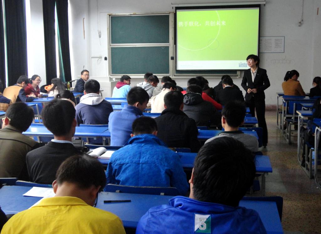 11月8日下午,经过校2015届毕业生(秋季)就业洽谈会的现场了解与交流,联化科技人力资源部范晶副经理一行在新教1206教室召开招聘宣讲会,就公司发展情况、人才需求、工作待遇等相关问题进行了集中说明,并与在场的100多位参会同学深入交流,随后展开录用笔试事宜,并于11月9日全天在校大学生创业基地对笔试通过同学进行了面试,最终化学工程学院化工、制药、应用化学专业第一批9名毕业生被录用。