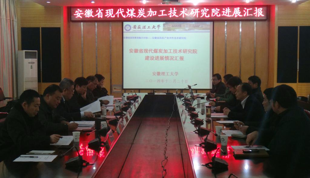 12月20日下午,学校组织召开了安徽省现代煤炭加工技术研究院阶段进展情况汇报会。邀请了安徽省重化工专家办公室主任李朝东、淮南市政协副主席、科学技术局局长吴健、合肥工业大学科学技术研究院副院长崔鹏、安徽工业大学学科建设处处长郑明东、江苏地质矿产设计研究院院长张谷春、淮南矿业集团潘一矿厂长王传金等6人组成专家组对研究院阶段进展情况进行检查,李朝东主任任专家组组长,自拍网 校长郭永存出席并主持了会议。