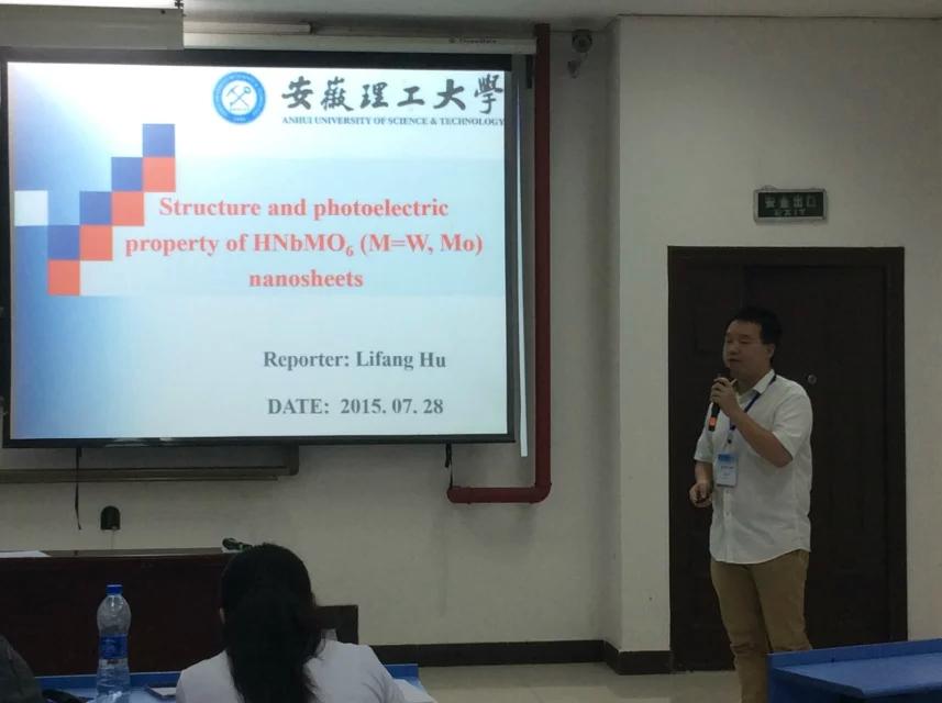 会议期间,我校师生与与会专家学者展开了深入交流。化工学院胡丽芳博士作了题为《HNbMO6(M=W, Mo)纳米片的结构和光电性质研究》的精彩学术报告,受到与会人员的关注与好评。