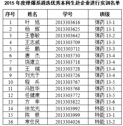 为了强化弹爆系高年级本科生创新实践能力,适应高素质复合型人才的培养要求,化工学院近期从弹爆系两个本科专业中选拔16名本科生赴淮南舜泰化工有限责任公司进行集中实训。