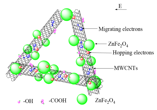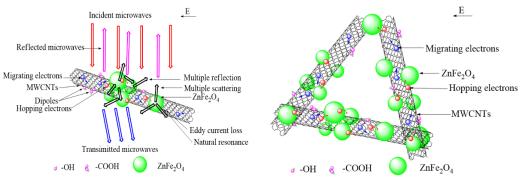 图1 三维网状MWCNTs/ZnFe2O4杂化复合材料的电磁波吸收机制示意图