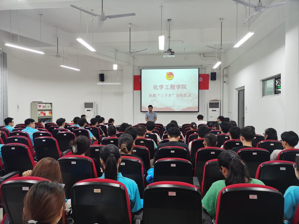 7月9号,化工学院2021年大学生志愿者暑期“三下乡”社会实践活动出征仪式在崇礼楼102报告厅举行。院党委书记徐泽绵、团委书记周昌贵出席仪式并讲话,院“三下乡”社会实践团队师生代表共百余人参加了出征仪式。
