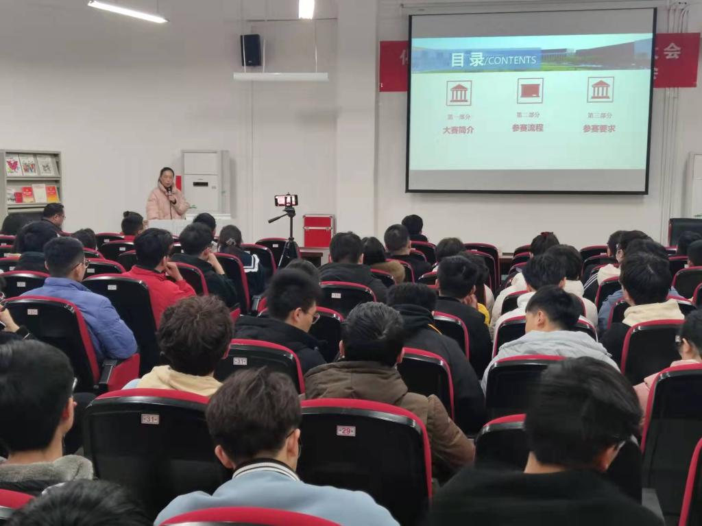 王青华向同学们讲解了“互联网+”竞赛的背景、意义,对我校历年参赛情况进行了通报。她结合自己参加省级竞赛培训的情况,对竞赛的选题来源、项目书的撰写以及参加国赛的相关注意事项进行了详细阐述。