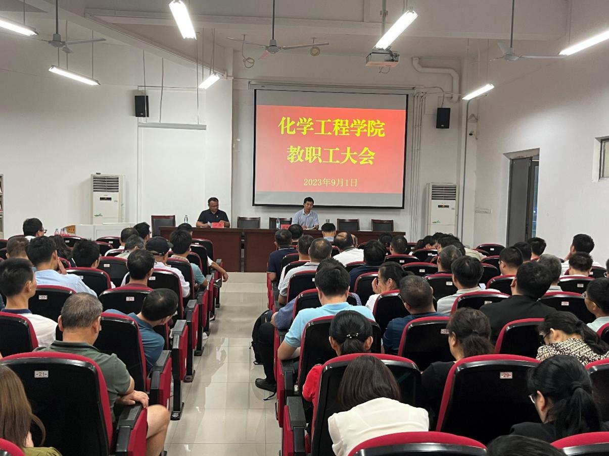 9月1日下午,化工学院在崇礼楼东102报告厅召开全体教职工大会,总结暑期工作,布置本学期重点工作。学院党政领导班子及全体教职工参加大会。会议由学院党委书记徐泽绵主持。