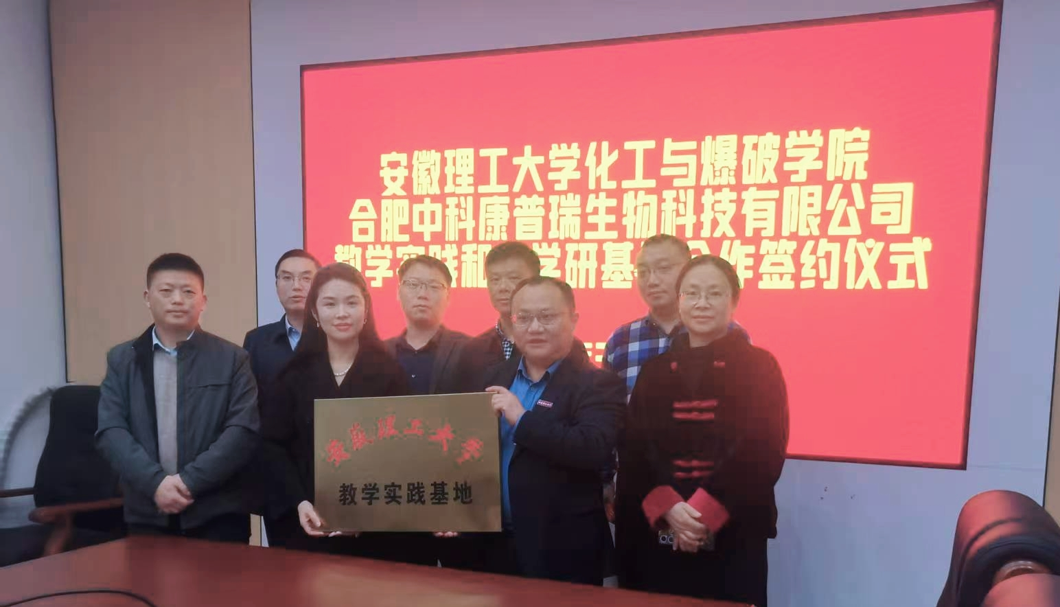 会上,学院党委书记刘瑞对董事长晏静、总经理葛洪涛来学校开展交流合作表示热烈欢迎,介绍了学校和学院近年来在学科发展、平台搭建、学生培养、就业服务等方面取得的一系列突破性进展和标志性成果。他指出,合肥中科康普瑞生物科技有限公司技术实力雄厚,双方在专业人才培养、科研成果转化等领域合作前景广阔,希望双方加强沟通交流,充分发挥各自优势,资源共享、优势互补。会后,院长汪泉代表学院与合肥中科康普瑞生物科技有限公司签订了合作协议书,并与企业负责人共同为教学实践基地、产学研合作基地揭牌。