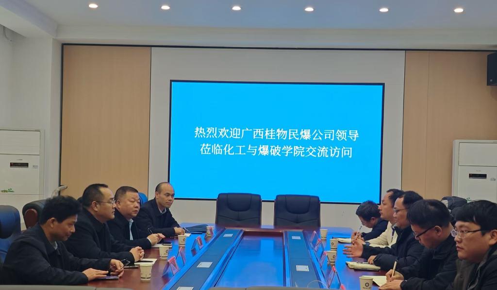 2月28日,广西桂物民爆物品有限公司总经理吴香善一行来自拍网 访问交流。自拍网 院长汪泉、党委副书记曹秀军、副院长胡劲松以及爆炸科学与工程系部分专业教师在学院东103会议室开展座谈交流,汪泉主持座谈会。