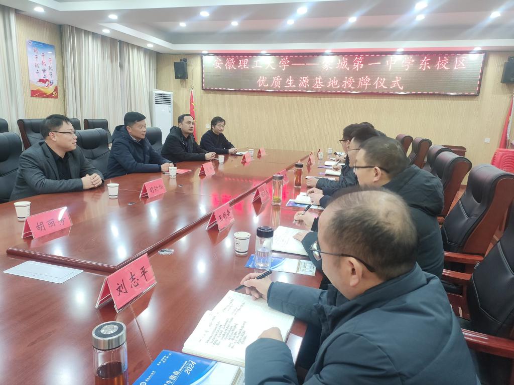 刘瑞代表学校从校情简介、学科发展、平台支撑、人才培养、教学科研成果等方面介绍了近年来学校的高质量发展,并就学校在优质生源基地学生转专业等方面的优惠政策予以解读。刘瑞对亳州地区,特别是蒙城一中近年来持续输送大量优质生源到我校继续深造表示感谢,希望以此次东校区新建优质生源基地为契机,蒙城一中进一步加大对学校招生的支持力度,并诚挚邀请一中各位领导、年级主任、班主任和意向学生到校考察,实地感受我校“三有”办学理念。