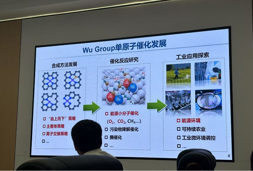 周煌教授从原子尺度催化剂设计原理、电化学器件开发技术及催化材料稳定性优化等方面,系统解读了高稳定性原子级分散金属催化材料的最新研究进展。他指出,原子级分散催化剂的电子结构调控与界面相互作用机制研究,对提升催化反应选择性和材料服役寿命具有关键意义,而开发新型载体材料与原子锚定技术是突破现有催化材料稳定性瓶颈的核心路径。互动环节中,周煌教授围绕单原子催化剂的制备成本控制、催化活性位点动态监测、工业级放大生产工艺等问题,与参会师生展开深入探讨,并针对原子级催化材料在新能源电池领域的应用拓展提供了创新性思路。