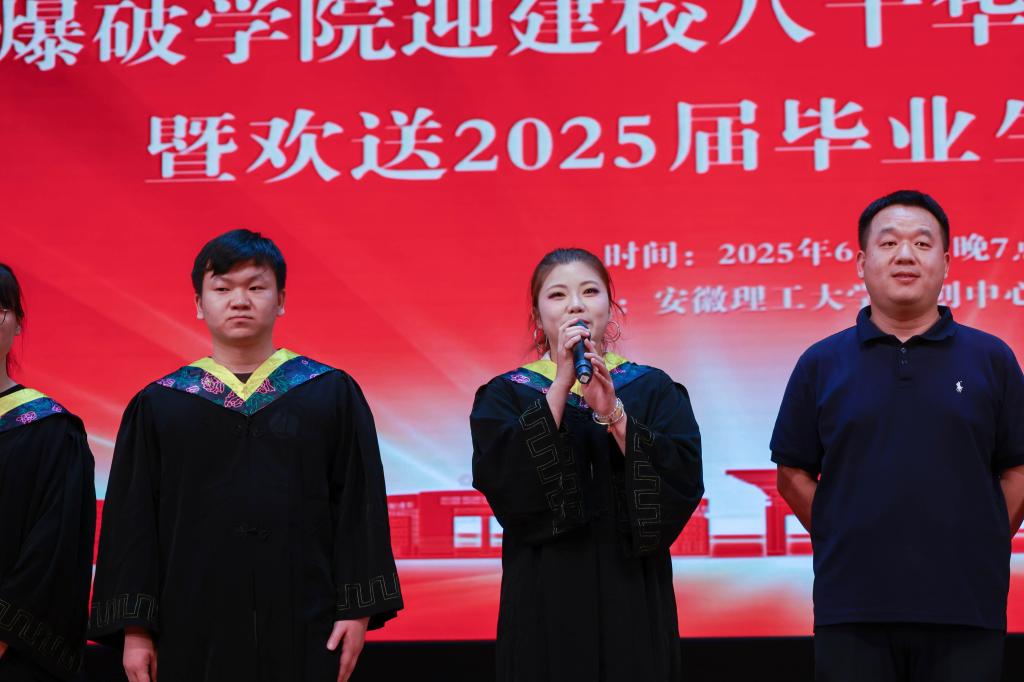 晚会以源起•淮水之南、生长•舜耕山下、蜕变•泰丰大街、逐梦•九州之域四大篇章展开,融合歌舞、情景剧、武术、魔术等多元艺术形式,展现学校、学院发展历程与学子们的青春风采。学院党委书记刘瑞为晚会致开幕辞,回顾了学校、学院砥砺深耕的奋斗足迹,寄语毕业生以青春之名勇担时代使命。