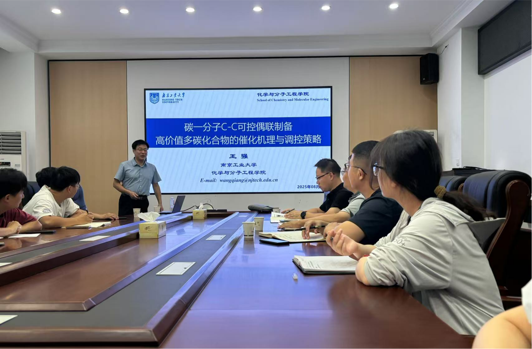 8月21日下午,南京工业大学王强教授应邀来校作题为《碳一分子C-C可控偶联制备高价值多碳化合物的催化机理与调控策略》的学术报告,学院教师及研究生50余人现场聆听报告。报告会由学院院长汪泉主持。