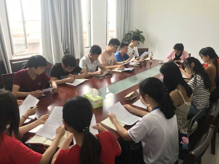 在支部书记孙艳菊老师的带领下,本次活动采取边学习边朗读的形式。大家认认真真的开始轮流朗读十九大报告原文,当在朗读过程中遇到重要的地方,会停下与其他成员进行学习交流,并记录在学习笔记中,这个过程让大家受益匪浅。读原文让我们进一步深刻系统全面的了解十九大报告,并通过结合之前的理论学习,促进了青年党员党性的提升,也让大家体会到要想准确领会把握党的十九大精神的思想精髓、核心要义,就必须原原本本、原汁原味学习好党的十九大文献,就必须把刻苦攻读十九大报告原文作为基础任务,脚踏实地,一步一个脚印。