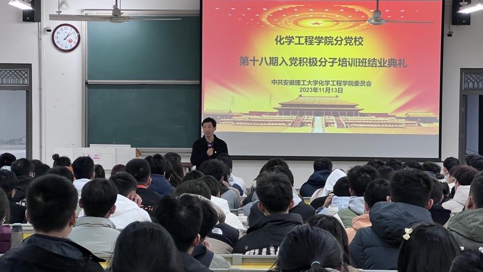 11月13日中午,化学工程学院分党校第十八期入党积极分子培训班结业典礼于明理202教室顺利举行,学院党委书记、分党校校长徐泽绵,培训班班主任和全体学员参加结业典礼。