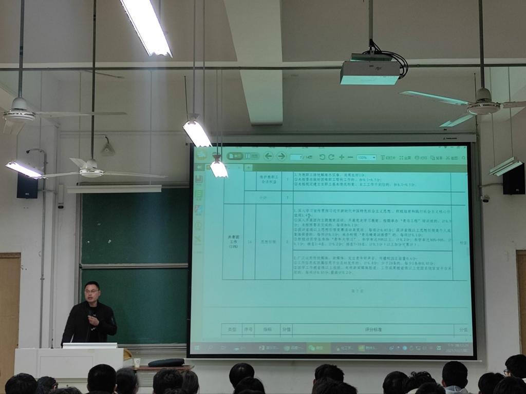 为提高学生干部的思想积极性,确保学院团学工作顺利开展,化工学院于12月7日晚在明理205教室召开了学生组织全员大会,并进行团学工作培训。学院团委书记杨志华参加会议并进行专题培训,学院研究生会、学生会、2021级团支部全体成员参加会议。