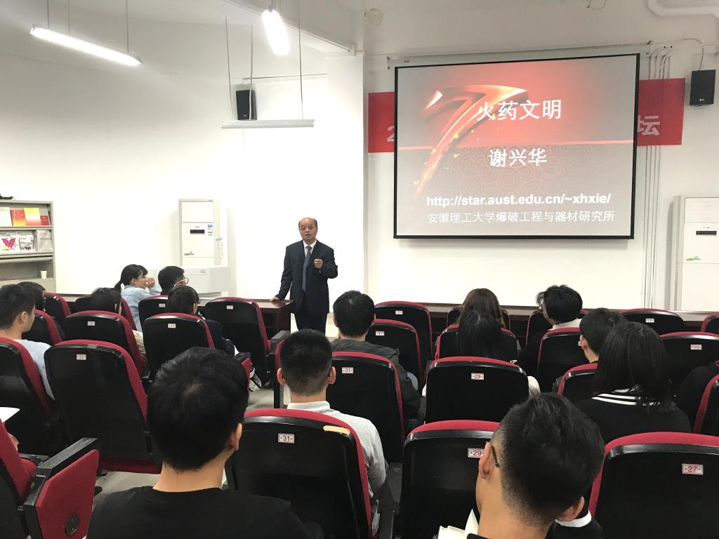 10月22日晚,校第五期“青马精英训练营”在崇礼楼102会议室开展专题讲座——火药文明。化工学院团委书记高圣涛主持,谢兴华教授主讲。