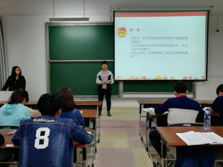 4月23日晚,化工17-3班团支部在天工北407开展“学习习近平总书记四进四信精神”主题班会。