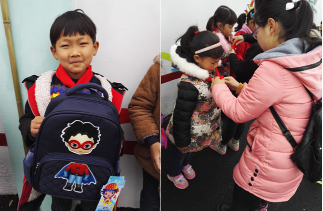 陪孩子们玩的过程中,看到孩子们的活泼,感受到了孩子们对父母的想念。返校后,继续后续的宣传收集活动,最后将收集的纸箱变卖后,为孩子们实现小心愿。三月二十日上午,我班成员再次来到小学将带着浓浓关怀的礼物送到孩子们的手中,为他们佩戴上红领巾,看着他们灿烂的笑容。