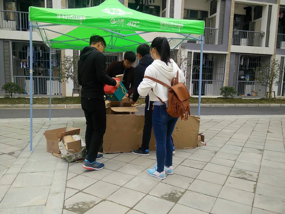 15日上午,化工15-3班成员分为两组,一组在校内的三个快递点设立快递盒回收点,收集同学们的快递盒,并向同学们宣传纸箱的多用途性,呼吁同学们分类处理纸箱。另一组前往曹庵镇第三小学了解学校学生们的情况,过程中裴校长像我们介绍了学校性质及就读情况。我班同学带着校内的留守儿童做游戏,了解家庭情况,并让孩子们写下自己的小心愿。