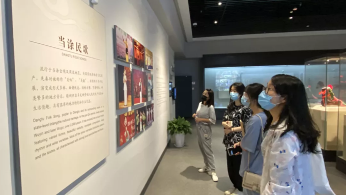 7月5日上午,调研团成员首先参观了马鞍山当涂民歌艺术馆。在民歌展示厅,讲解员为大家热情讲述了当涂民歌的悠久历史和传承现状,并介绍了近年来艺术馆在对当涂民歌的挖掘、整理、传承和发展上发挥的作用,沿着参观路线,大家不时驻足欣赏,被民歌的艺术魅力所深深吸引。调研团成员们还和当涂民歌传承人面对面交流,现场聆听了《打夯号子》《打麦号子》《小妹子送饭下田冲》等经典曲目,歌声时而高亢有力,时而婉转悠扬,独具特色的地方唱法也让大家沉浸在歌声描绘的火热劳动场景中。当涂民歌是当涂人民智慧的结晶,是劳动人民口头创作、口头演唱、口耳相传的文化表现形式的典型代表,经过历代文化人的艺术加工后,更具有了高度的历史价值和文化价值、艺术价值,是不可多得的音乐和语言艺术珍品。