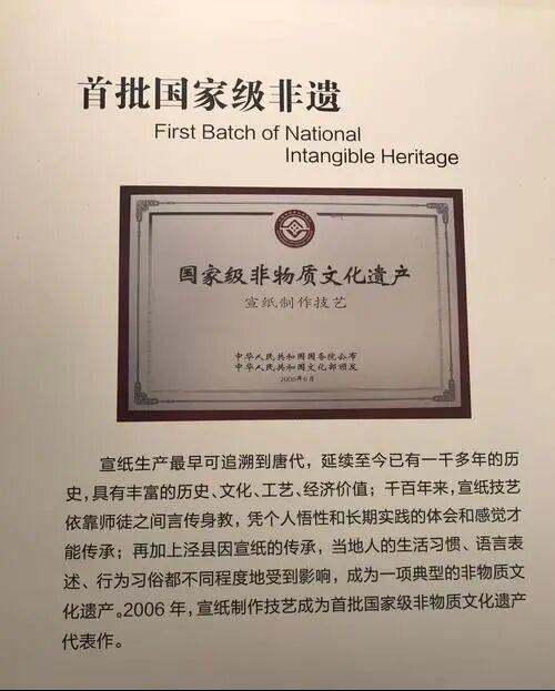 2008年,联合国教科文组织修改规则,将“人类口头和非物质文化遗产”改成“人类非物质文化遗产”,将一个国家每两年只申报一个项目,改成项目数量不限。当年,泾县县委、县政府抓住机遇,以中国宣纸集团公司作为申报单位,积极组织申报工作。2009年9月30日,联合国教科文组织在阿联酋召开的政府间常务会议上公布了宣纸制作技艺为人类非物质文化遗产代表作。