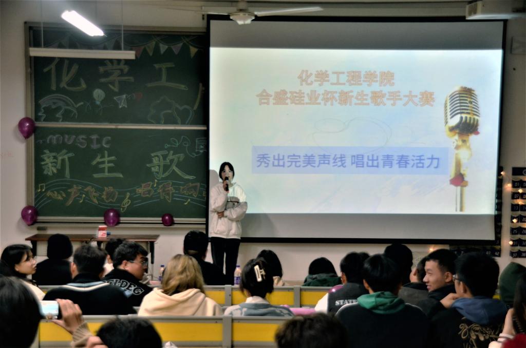 11月12日晚,化学工程学院合盛硅业杯新生歌手大赛在天工北102教室拉开帷幕。经过海选脱颖而出的1十八组选手亮相决赛,一展歌喉。