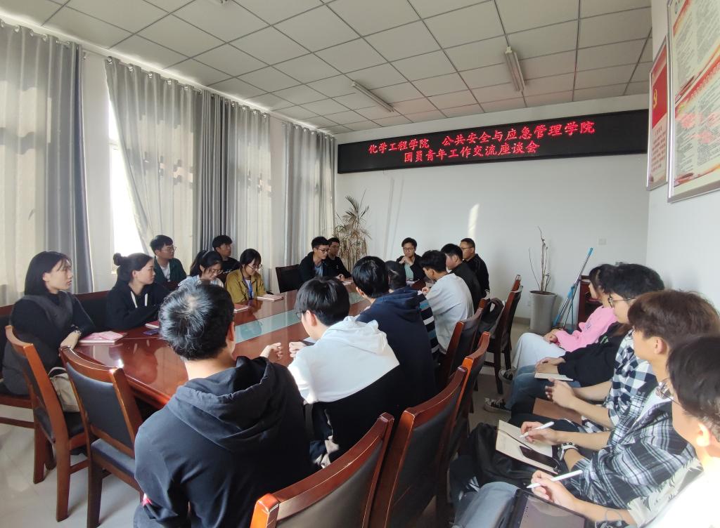 11月5日,为增强学生组织工作开展的规范性,加强不同学院之间的交流合作,自拍网 化学工程学院与公共安全与应急管理学院在化工学院“一站式”学生社区召开青年工作座谈会。化学工程学院团委书记杨志华、公共安全与应急管理学院团委书记许晓鹏、两学院学生组织成员代表共20余人参加座谈会。
