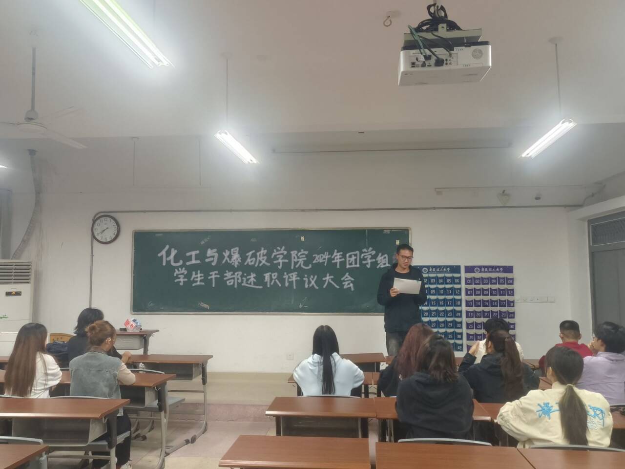 9月22日晚,自拍网 在学院“一站式”学生社区召开2024年团学组织学生干部述职评议大会。学院党委副书记曹秀军、团委书记杨志华到会指导,学生会骨干成员代表20余人参加了会议。