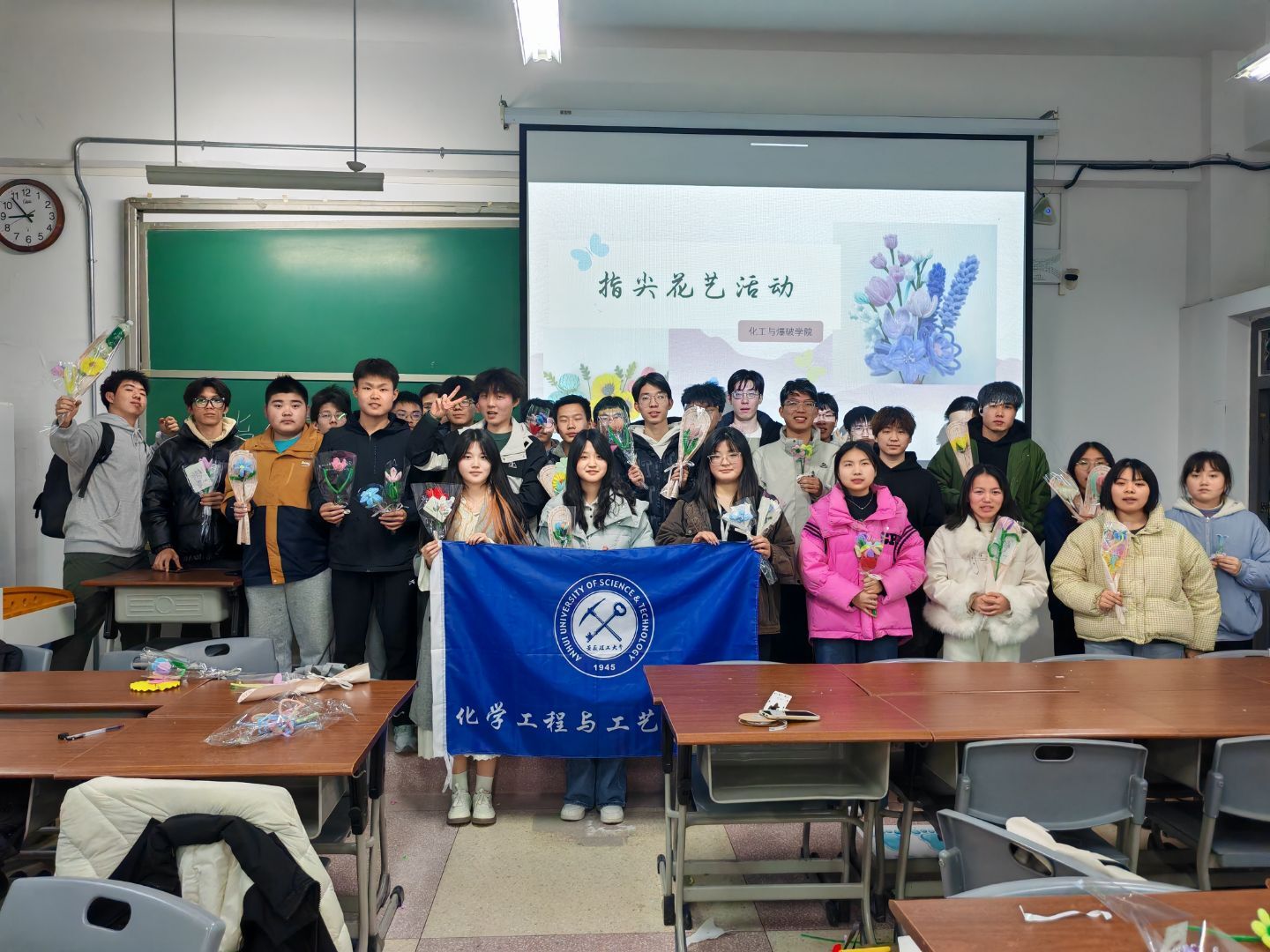 每年的3月8日是国际妇女节,在这个充满敬意与温情的日子里,校园内洋溢着感恩的氛围。化工24-2班的同学们以独特而富有创意的方式向学校女教职工表达敬意——亲手制作精美的手工花束。这些倾注心意的礼物,不仅点缀了节日的美好,也成为校园里一道温馨动人的风景。