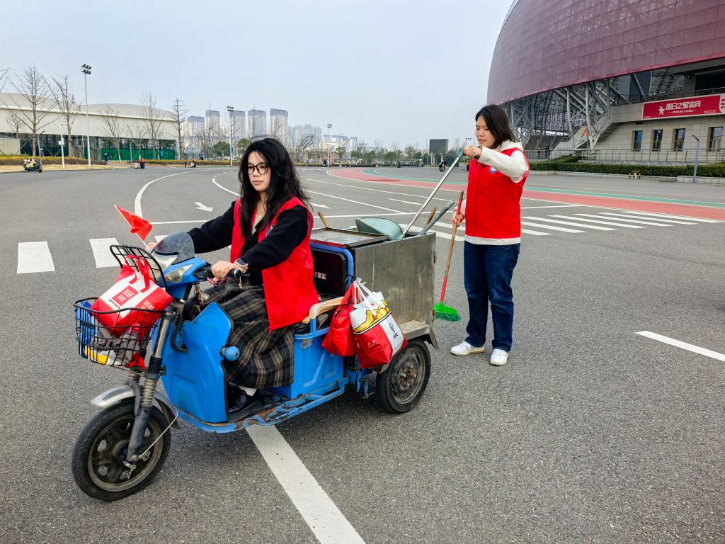 正午志愿者们到达奥体中心,在简单分组与任务分配后,大家都迅速投入到清扫工作中去。志愿者们手持清洁工具,认真清扫着奥体中心的每一处角落:有的志愿者专注清扫主干道上的落叶与垃圾,一次又一次地挥动扫帚,将地面打扫得干干净净;有的志愿者走进绿化带,耐心地用夹子夹起隐藏在草丛中的烟头和塑料袋;有的志愿者则负责擦拭公共区域的围栏和座椅,让它们焕然一新。面对繁重的清扫工作,志愿者们毫无怨言,齐心协力,用双手和汗水践行雷锋精神,展现一派热火朝天的劳动景象。