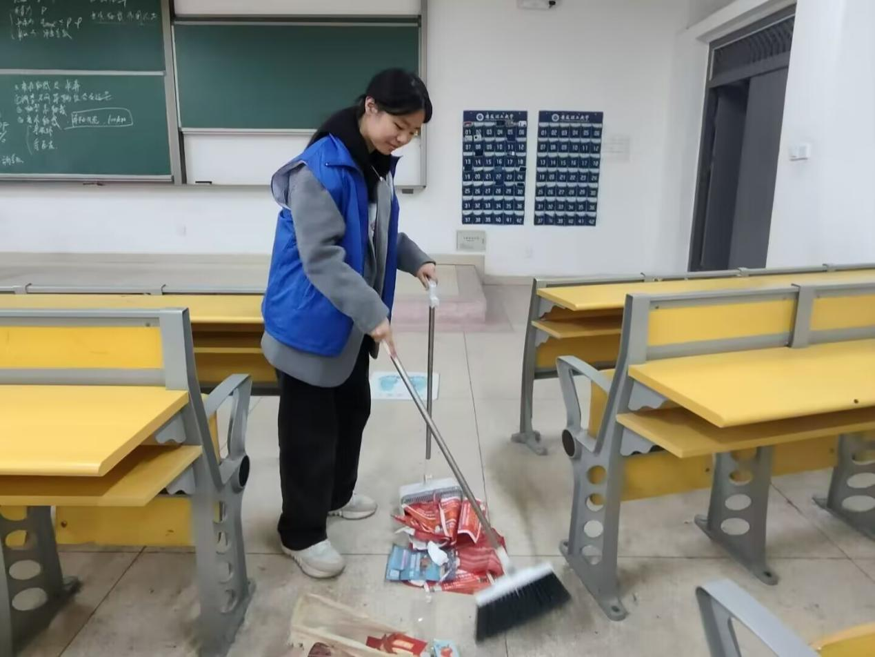 2025年3月17日晚上,化工24-2班全体同学积极参与了教室卫生清扫活动。活动以“净美校园行,青春环保梦”为主题,旨在增强大学生的卫生意识,同时广泛宣传良好卫生习惯的益处。在活动中,同学们齐心协力、分工明确,细致入微地打扫教室的每个角落。经过同学们的共同努力,教室焕然一新,为师生们营造了整洁舒适的学习环境,也为良好的校园环境建设贡献了力量。