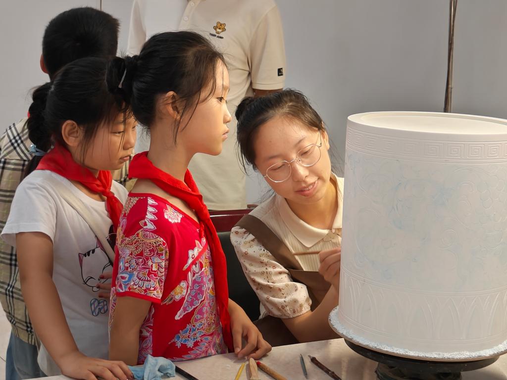 陶瓷体验馆中,老师带领着小朋友们站在一个转轮旁,上面放着一块已经初步成型的陶土,孩子们聚精会神地看着老师手中的动作,眼中充满了好奇和期待。老师一边操作转轮,一边耐心地向孩子们解释每一个步骤。在学习过程中孩子们不仅了解了陶瓷制作的基本知识,更感受到了传统文化的魅力,感受到了手工艺人的匠心精神。