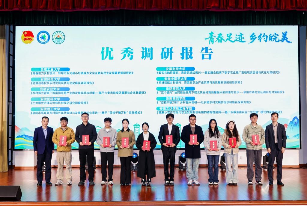2025年暑期,我校2万余名师生带着问题出发,充分利用自身专业优势,深入乡村、深入基层、深入企业开展“大调研”暑期社会实践活动,为乡村振兴和社会发展建言献策,累积撰写调研报告234篇,受到多方一致好评。未来,学校将持续深化实践育人模式,引导广大青年学子将专业知识与基层需求深度结合,用脚步丈量乡土、以实干解决难题,为全面推进乡村振兴战略贡献更多安理智慧与青春力量。