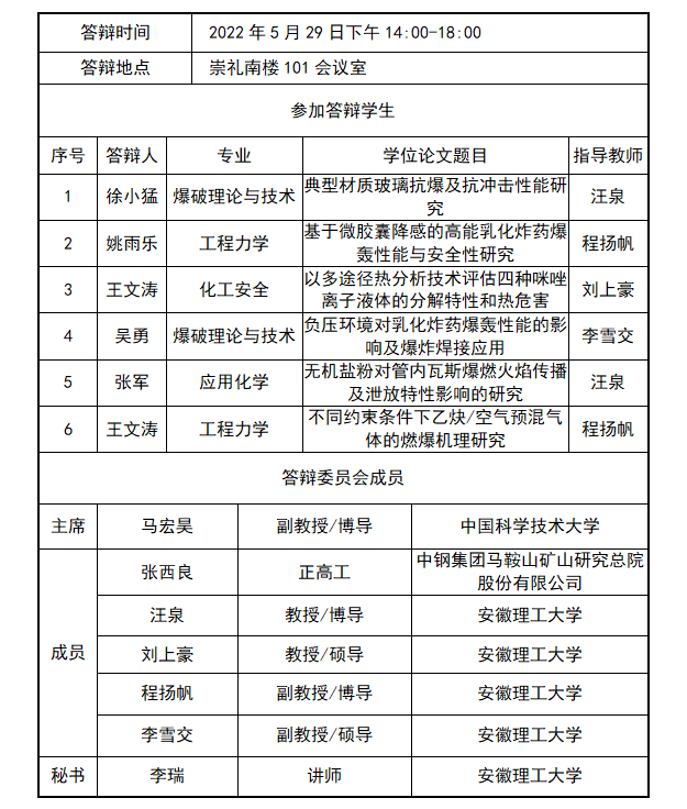 化学工程学院硕士研究生学位论文答辩公告(二)