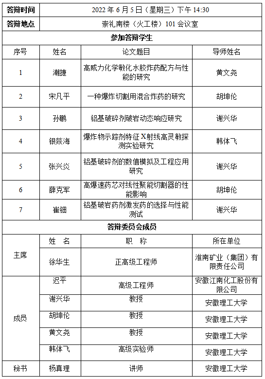 化学工程学院硕士研究生学位论文答辩公告(六)