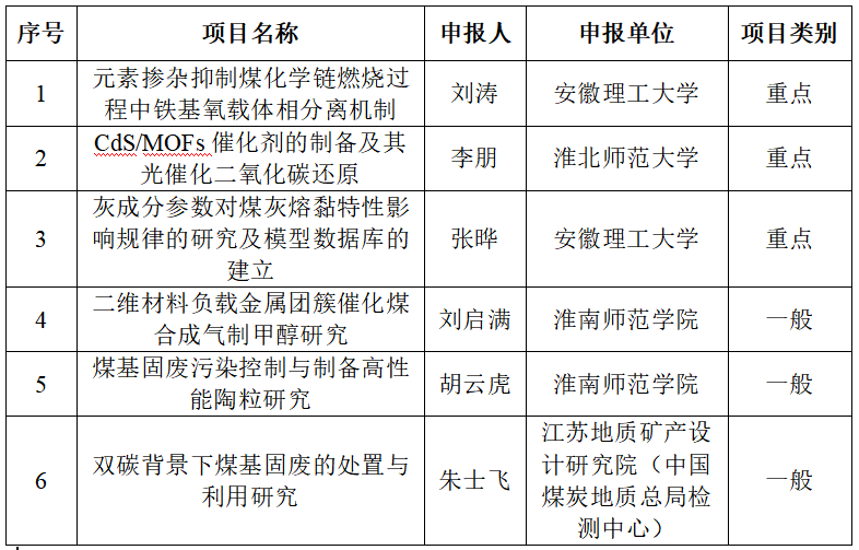 2022年安徽省现代煤炭加工技术研究院开放基金拟立项项目公示