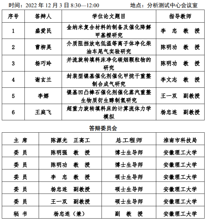 化学工程学院硕士研究生学位论文答辩公告(三)