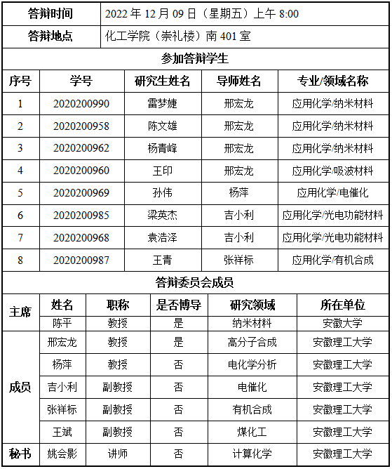 化学工程学院硕士研究生学位论文答辩公告(六)